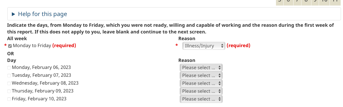 일한 시간(Hours)은 Work and wage for week 1, 2 부분에 채워 넣고 Availability 부분에서는 모두 다 부상으로 일해 일하지 못한 것으로 표기를 하라고 하심!