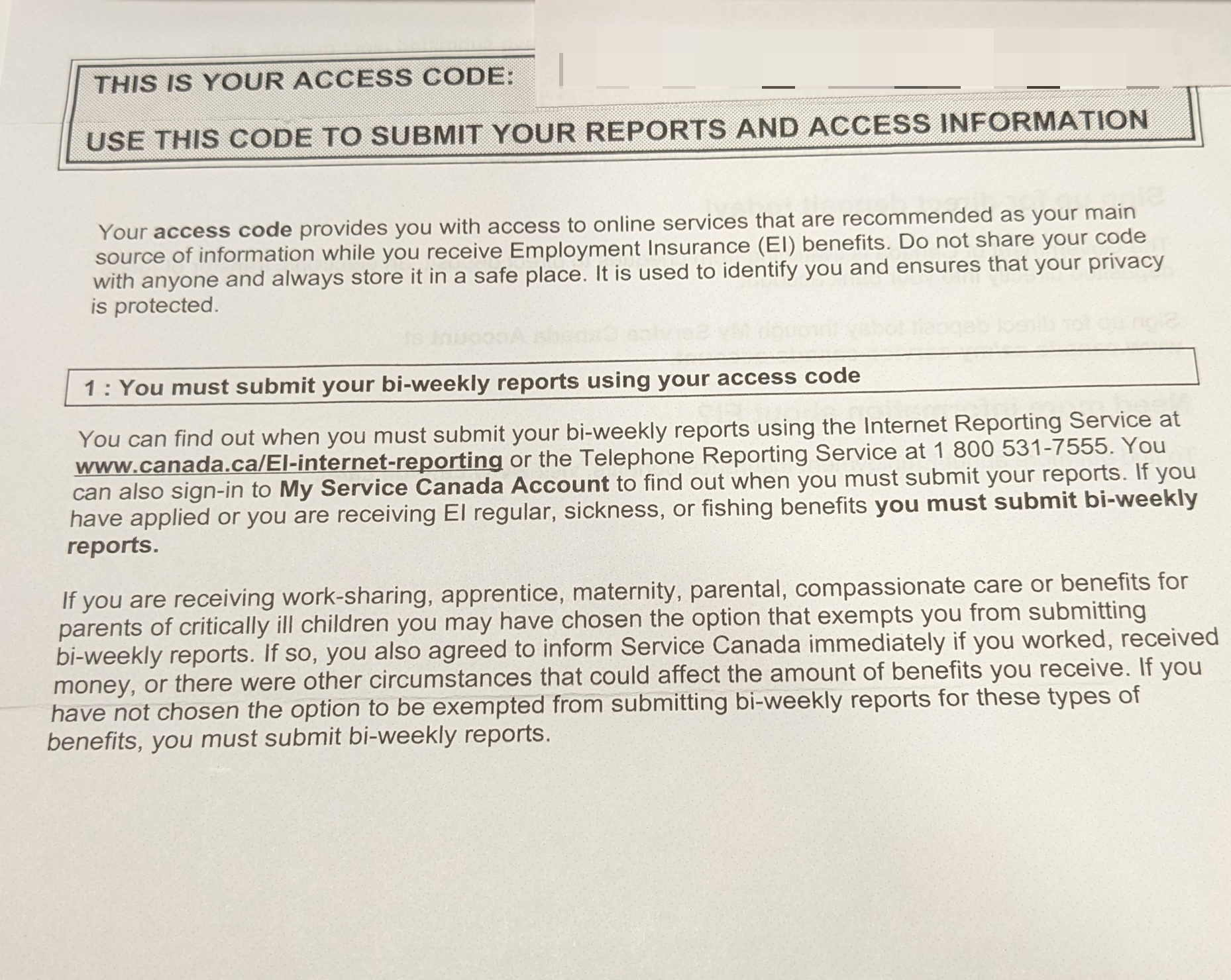ROE (내 경우에는 고용주가 인터넷으로 바로 등록을 해줬지만 프린트를 해서 준 경우에는 EI에 직접 메일로 발송해 줘야 한다)