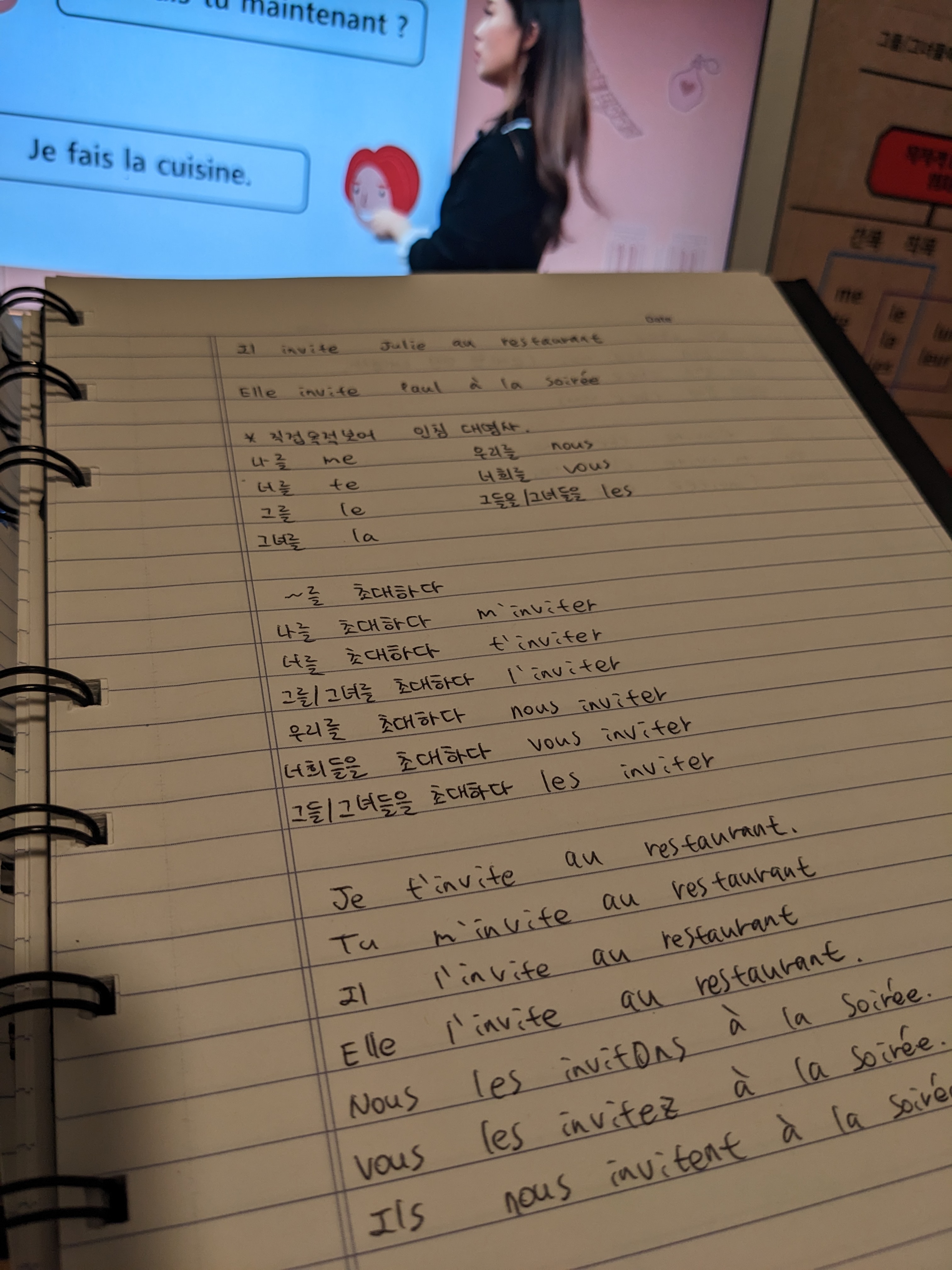 Je t'invite au restaurant 나는 너를 식당에 초대한다.
