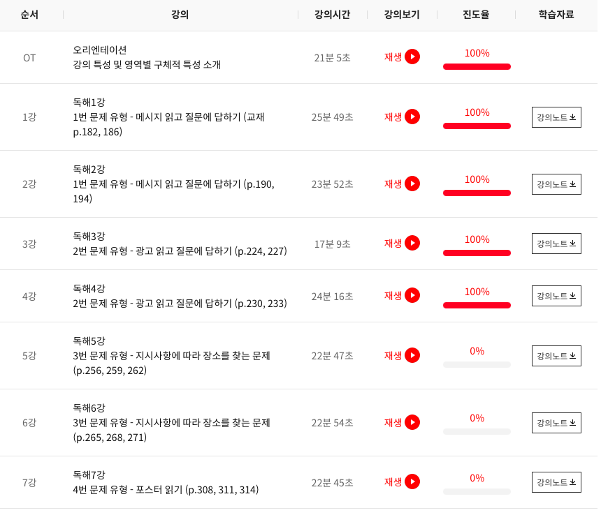 작문은 어려워서 두번씩 반복해서 듣고있는데 사실 모든 강의를 두세번씩은 들어야 할 것 같다.